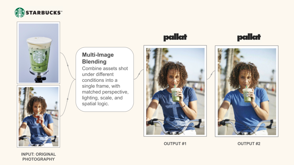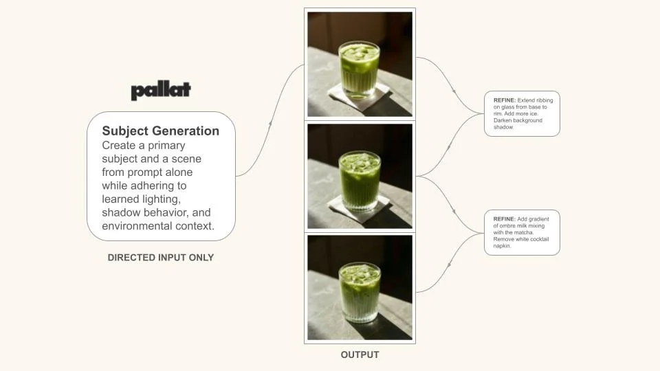 Pallat doesn’t guess how food & beverage should look. It learns from high-quality, fully licensed photography and real-world production behaviors enabling everything from single-subject control to complex multi-image production.
